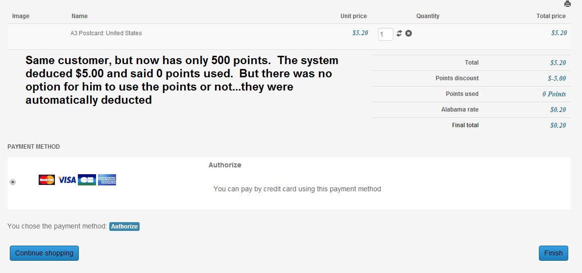 This new step will allow your customer to see the number of his points and choose if he want to use them or not for this order.