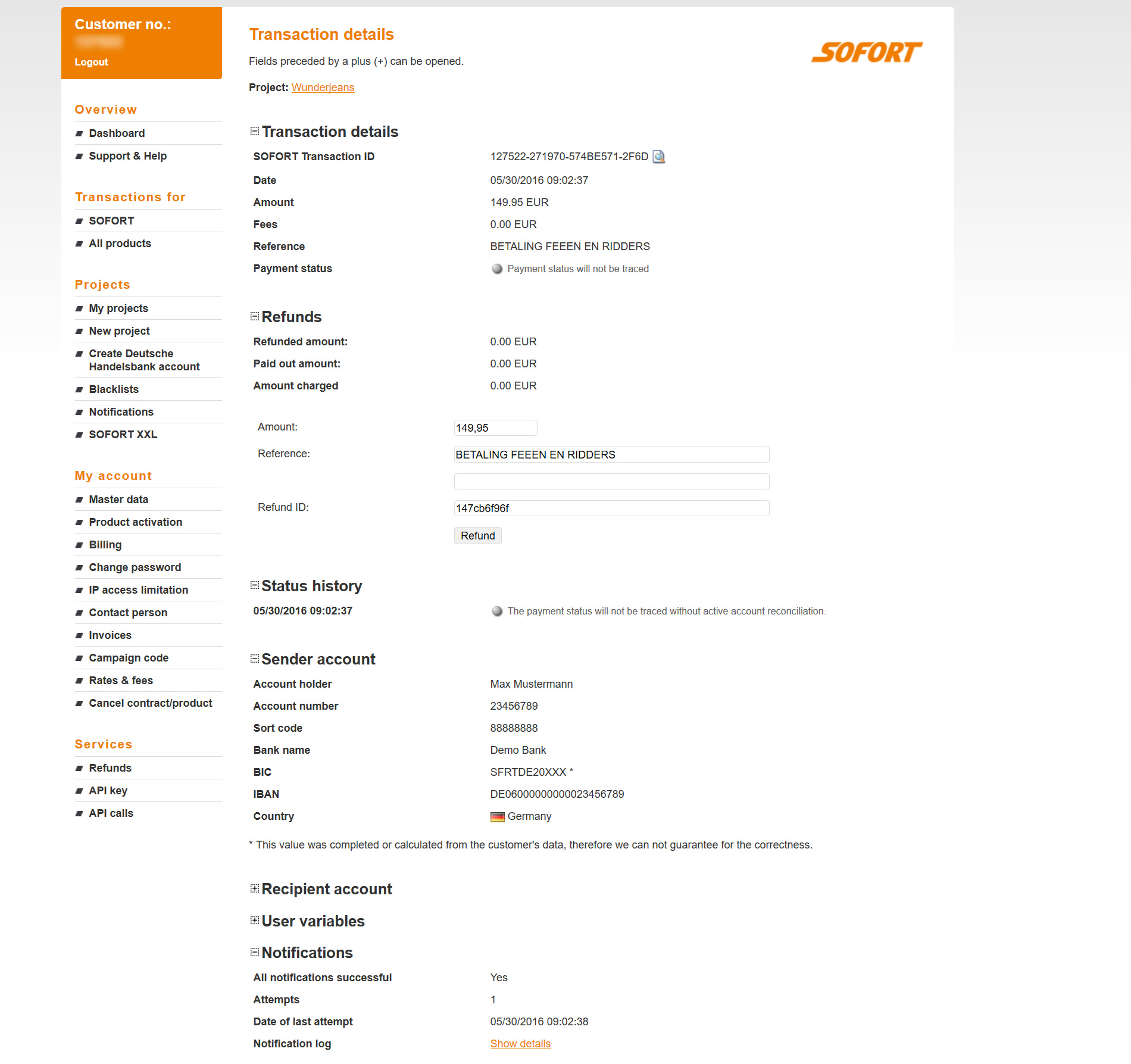 If your problem persist, it will be useful to get some debug data, like the result of the call " $transactionData->getStatus() ", in order to know which status code is returned by the function (if it's not "received" or "untraceable").