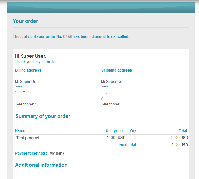 A second email is normally sent by the system when the order is confirmed by the payment plugin when it receives the payment notification from the payment gateway, but only if you set the $history parameter of the modifyOrder function to true and that the payment notification is actually received by your payment plugin.