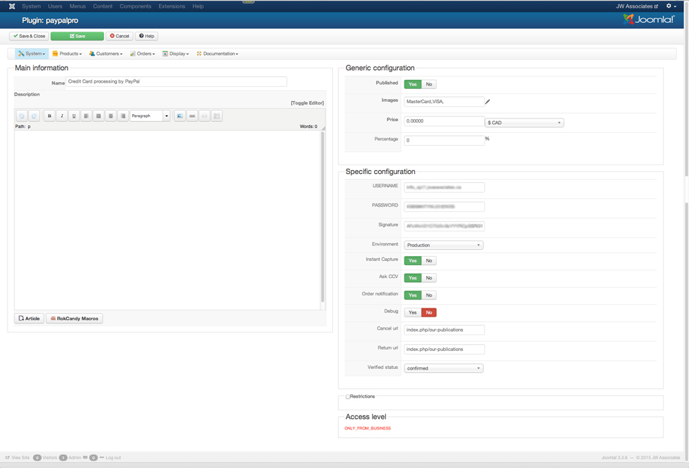 If you want access to a copy of the site, I'll set one up on my own testing server and you can have a look at everything from the Joomla Super Admin - give me 24 hours to do this and PM a password. In the mean-time, the site is jwassociates.ca (missed that at the top).