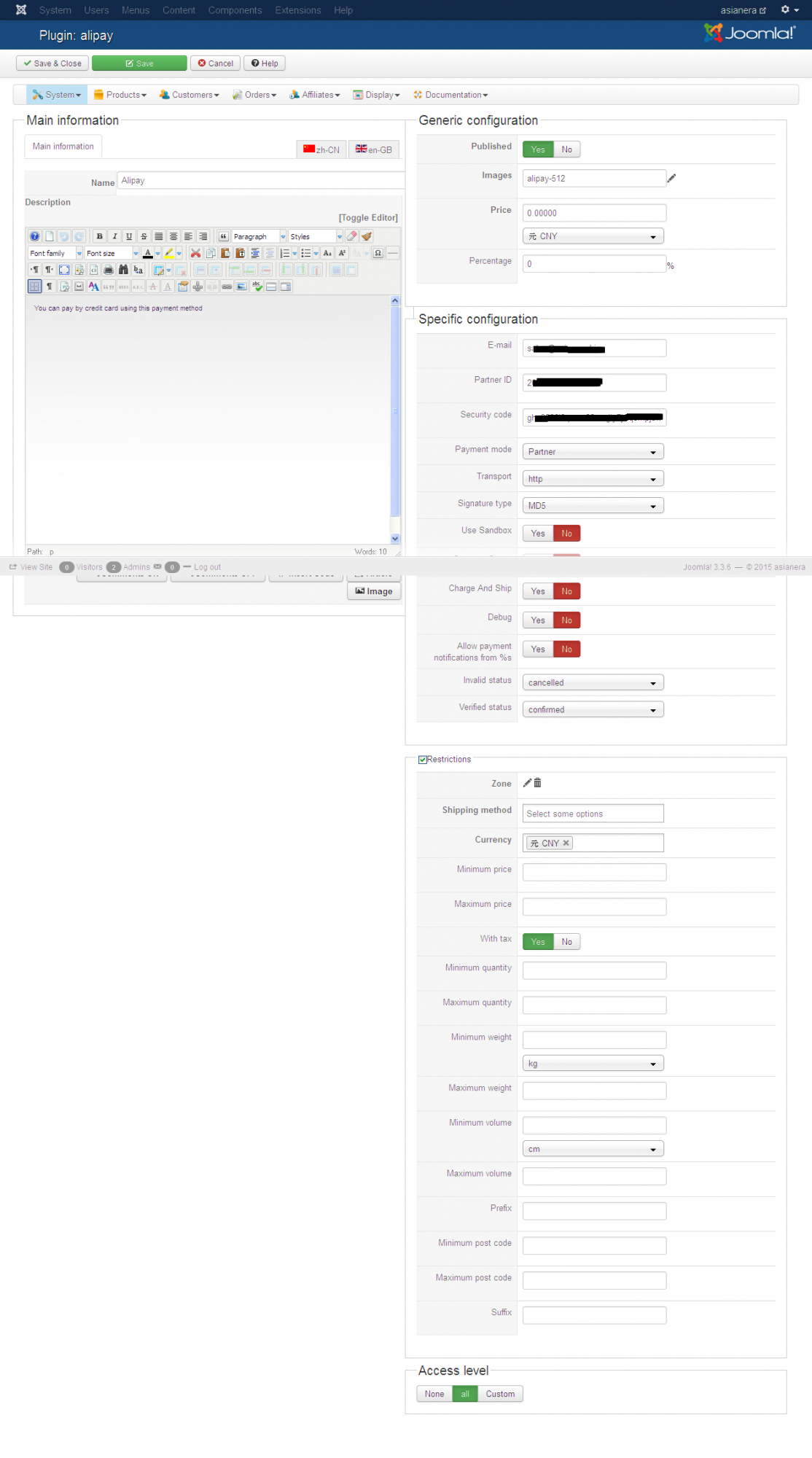 Can you show me how did you configured your Alipay payment method through some screenshots ?