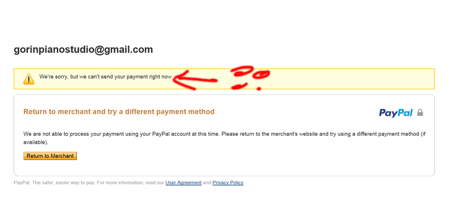 "We're sorry, but we can't send your payment right now."