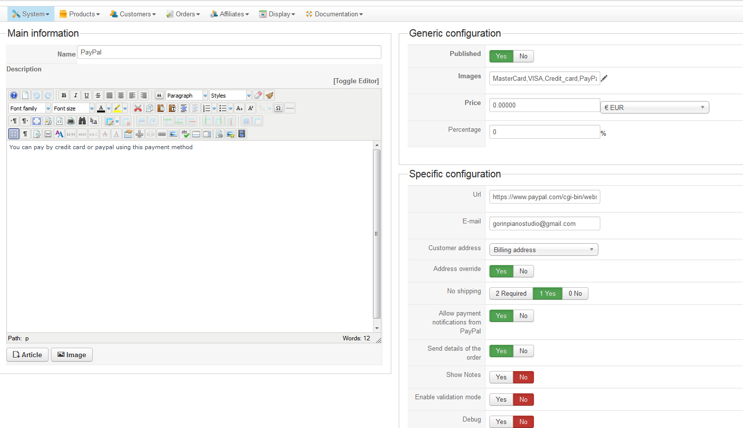 The shop works fine. I have only one payment-method and that is Paypal.