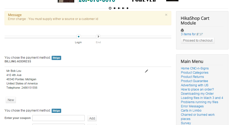 I have installed the Stripe Payment plugin, and it seems to work until the actual payment.