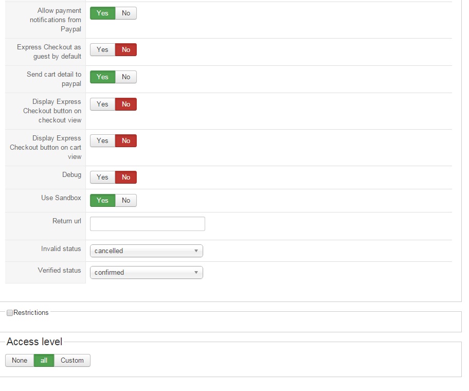 Basically is what the topic says. I've installed the paypal plugin and configure it. But when I test it and try to check out in my shop, it doesn't allow me to chose paypal, only "bank transfer". I've added pictures of the paypal configuration and the frontend checkout.