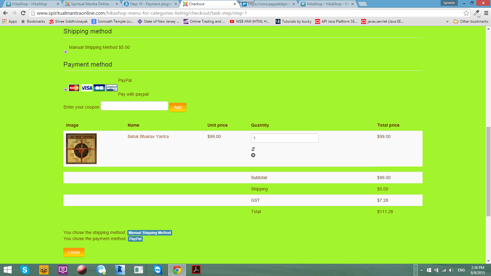 -- url of the page with the problem -- : www.spiritualmantraonline.com/hikashop-m...ies-listing/checkout
