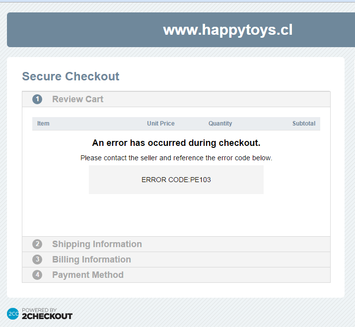 Recently I bought the 2CheckOut plugin, the first day it work perfectly. I didn't important changes in the system, just keep uploading products, now every time that I try make an order when I jump to the 2CheckOut page I got this:
