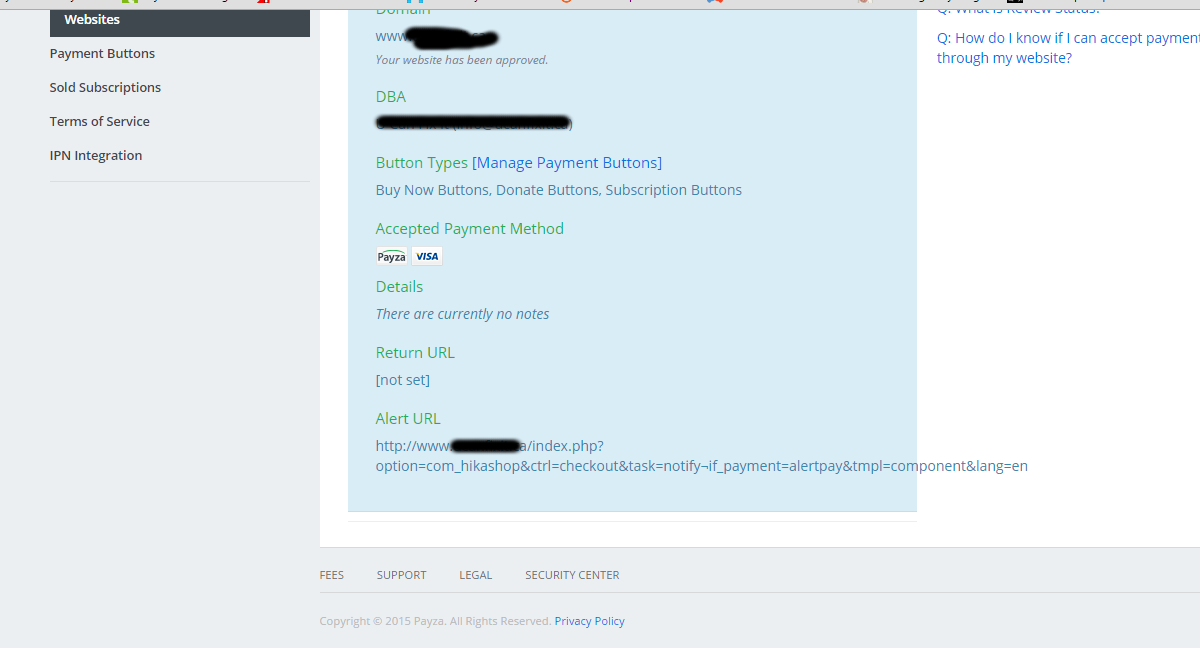 - The return URL configured in your Payza account is wrong. You've entered there the IPN URL instead of the the normal return URL. In fact, you don't need to provide a return URL in your Payza account as HikaShop already sends it to Payza.