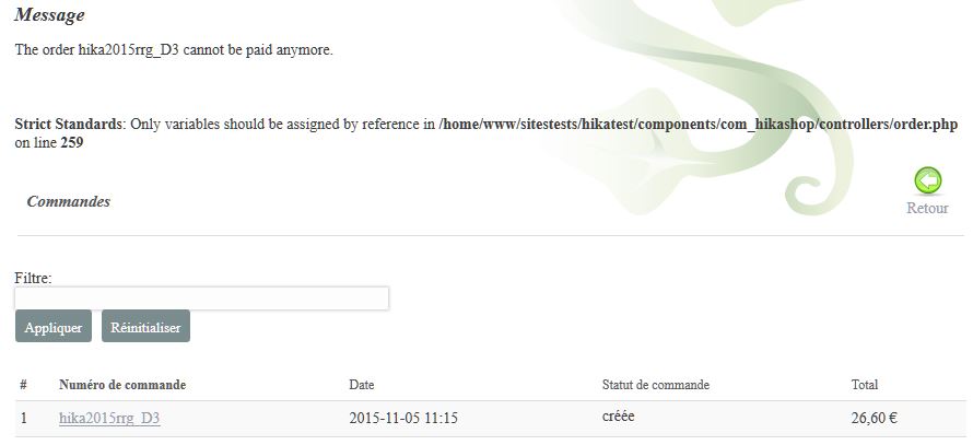 Je dois dire que j'ai du mal à m'y retrouver. Je me suis intéressé à ça à cause du problème Sandbox, mais sur le site en cours de développement, bien que le retour soit défini à "créé" sauf si le paiement est validé, que ce soit l'acheteur qui ne valide pas le paiement ou PayPal qui prétende que la facture a déjà été payée, la commande est automatiquement définie à "annulée" au retour de Sandbox. Impossible donc ensuite de la payer, sauf si j'ajoutais "annulée" aux statuts des commandes impayées, ce qui ne me semble pas souhaitable.