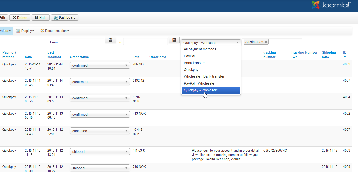 2. For the orders "payment methods" filtering on the orders listing, the issue is that the filtering is done at the plugin level, not at the payment method level. So regardless which payment method you select, as long as it is the same payment plugin, you'll see all the orders of the payment plugin selected. We'll change that for next version for better consistency.