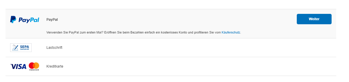 2. You'll find attached a screenshot of how the PayPal plus payment selection page will be displayed at the last step of your checkout workflow, just before being redirected to the PayPal platform. After that customers will be redirected back to your shop with a thank you message displayed.