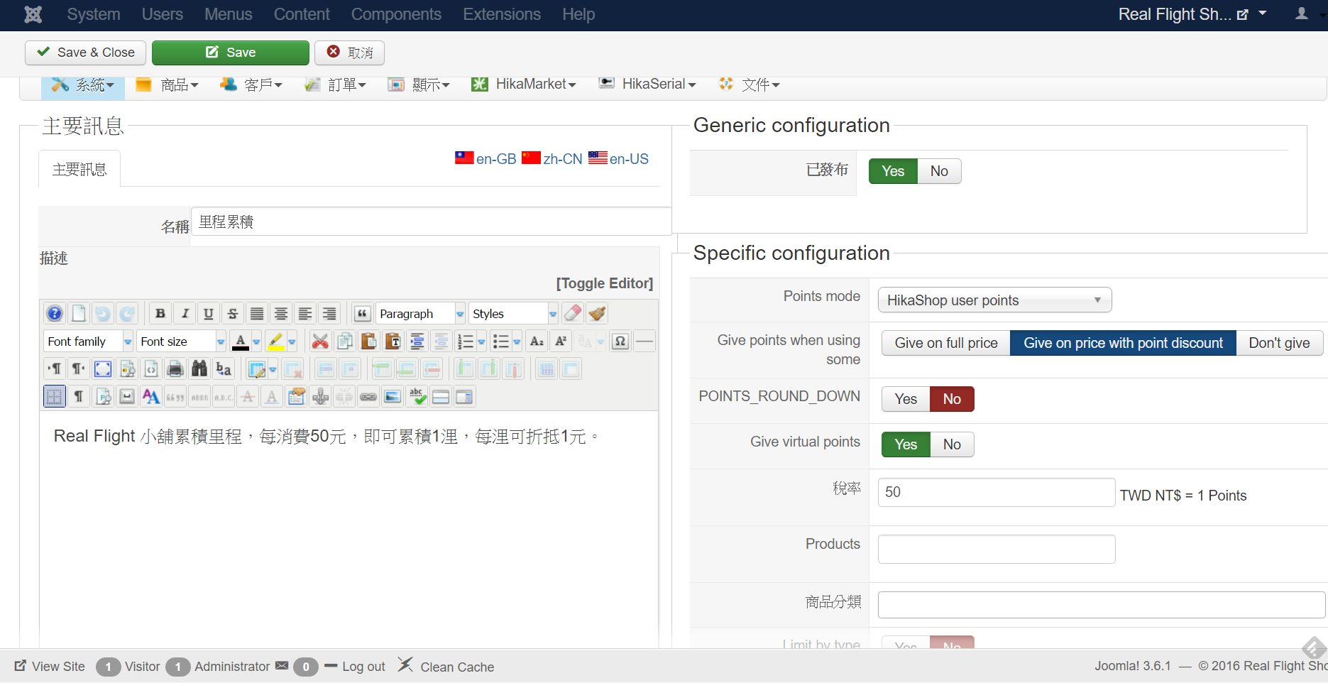 And I follow the document here www.hikashop.com/support/documentation/2...57-using-points.html