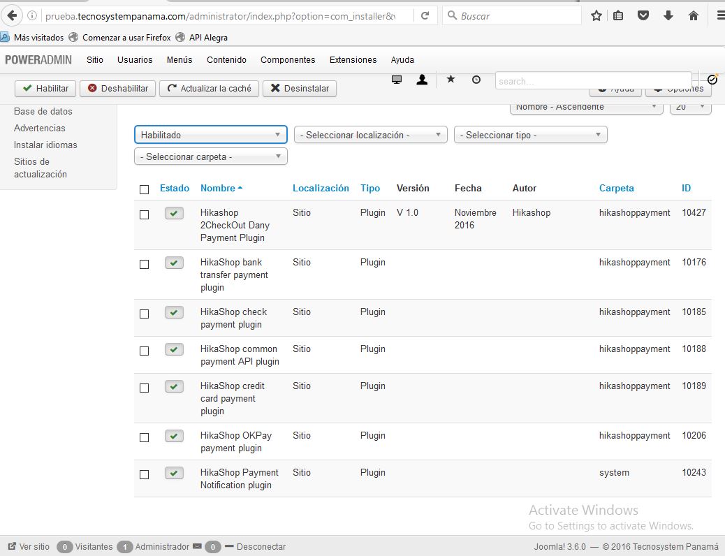 Even when the plugins of the payments method are installed and availables(hika1.JPG), it doesn't appears in the hikashops payments methods(hika2.JPG).