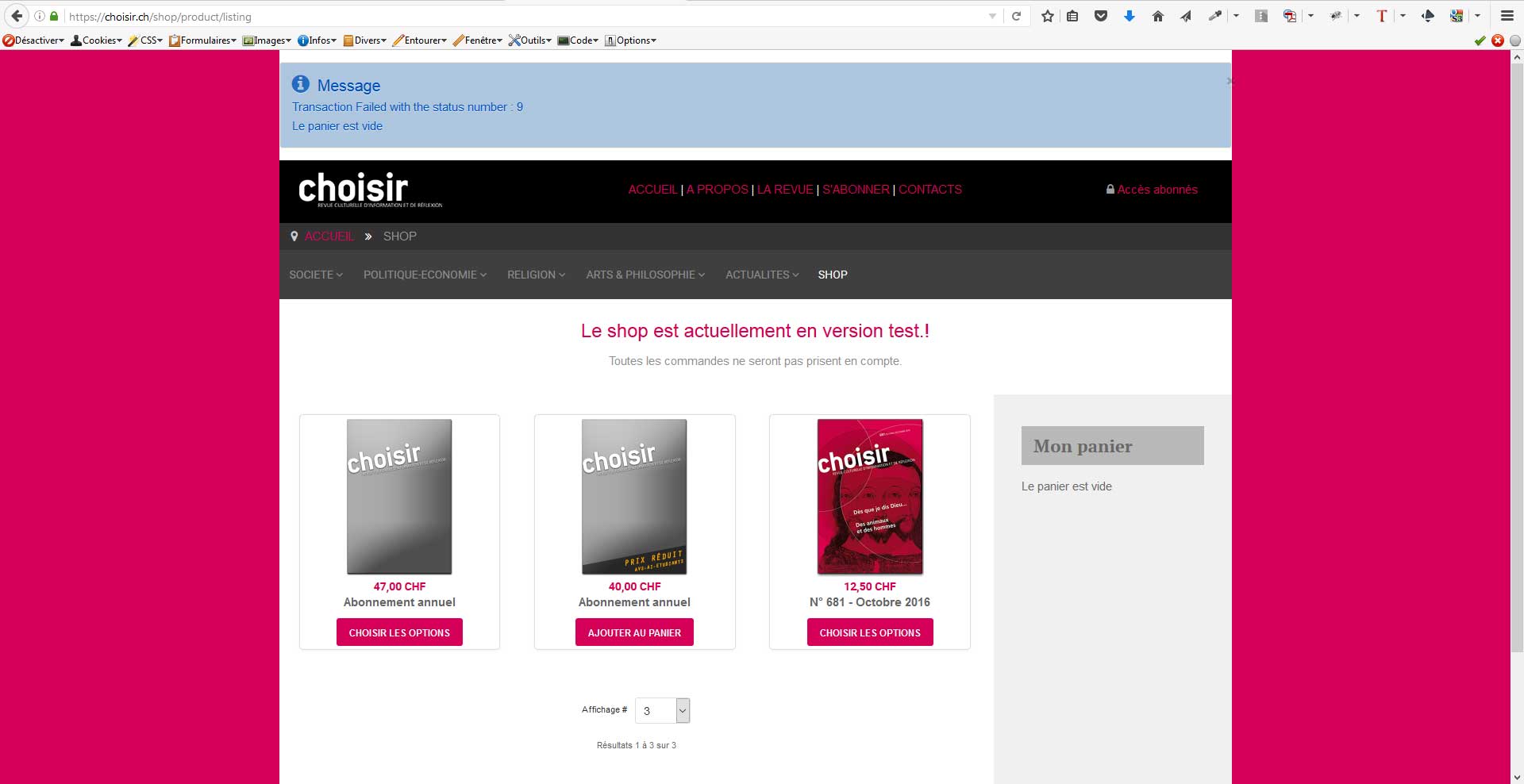 Merci pour vos accès, votre plugin PostFinance ainsi que votre espace Postfinance semblent bien configurés. Le problème semble provenir du fait que la platform PostFinance a calculé une chaîne de caractère crypté en utilisant le paramètre "PAYIDSUB", ce que le plugin PostFinance ne fait pas.