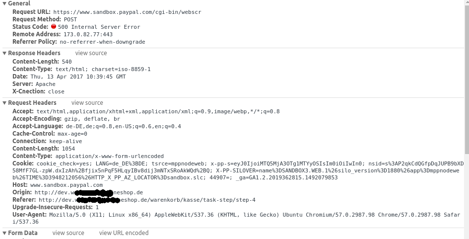 we also have a problem with hikashop and paypal payment. We are testing the shop with the paypal sandbox but after I got redirected to the paypal site I get a 500 Error. This problem exists for at least a week while some weeks ago this has been working.