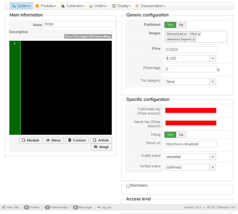-- Joomla version -- : 3.8.2