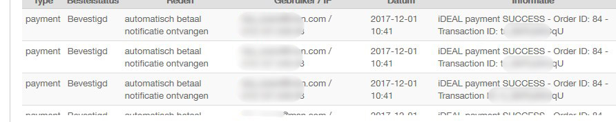 When the order is paid the Mollie (Dutch ideal payment provider)sometimes sends out double and sometimes up to 8 confirmations of the payment.