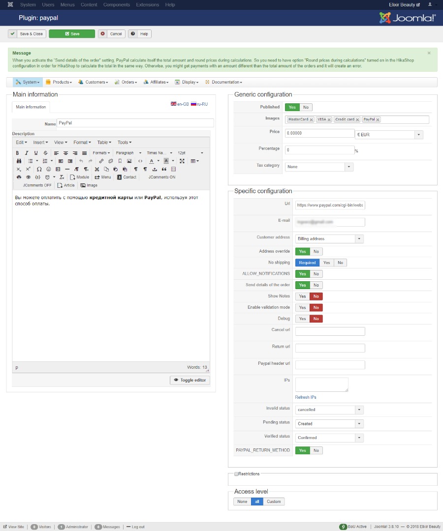 -- Joomla version -- : 3.8.10