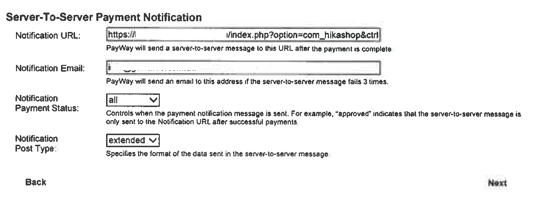 - Try to change in your Payway Merchant settings your Notification Url :
