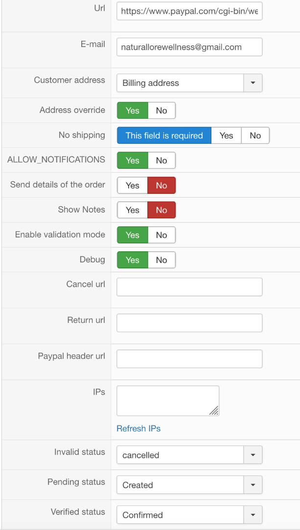=> This 2 payment method are very different, can you send us their relative screenshot configuration page (mask your references)