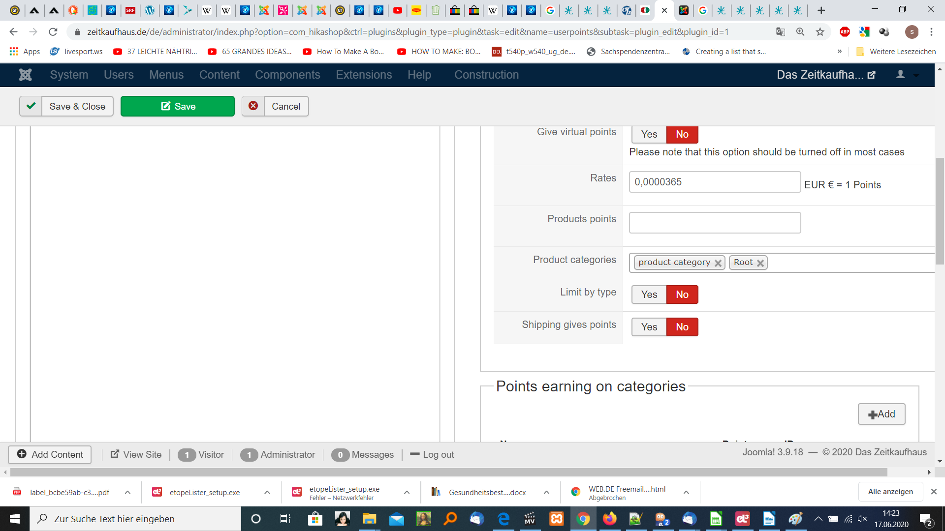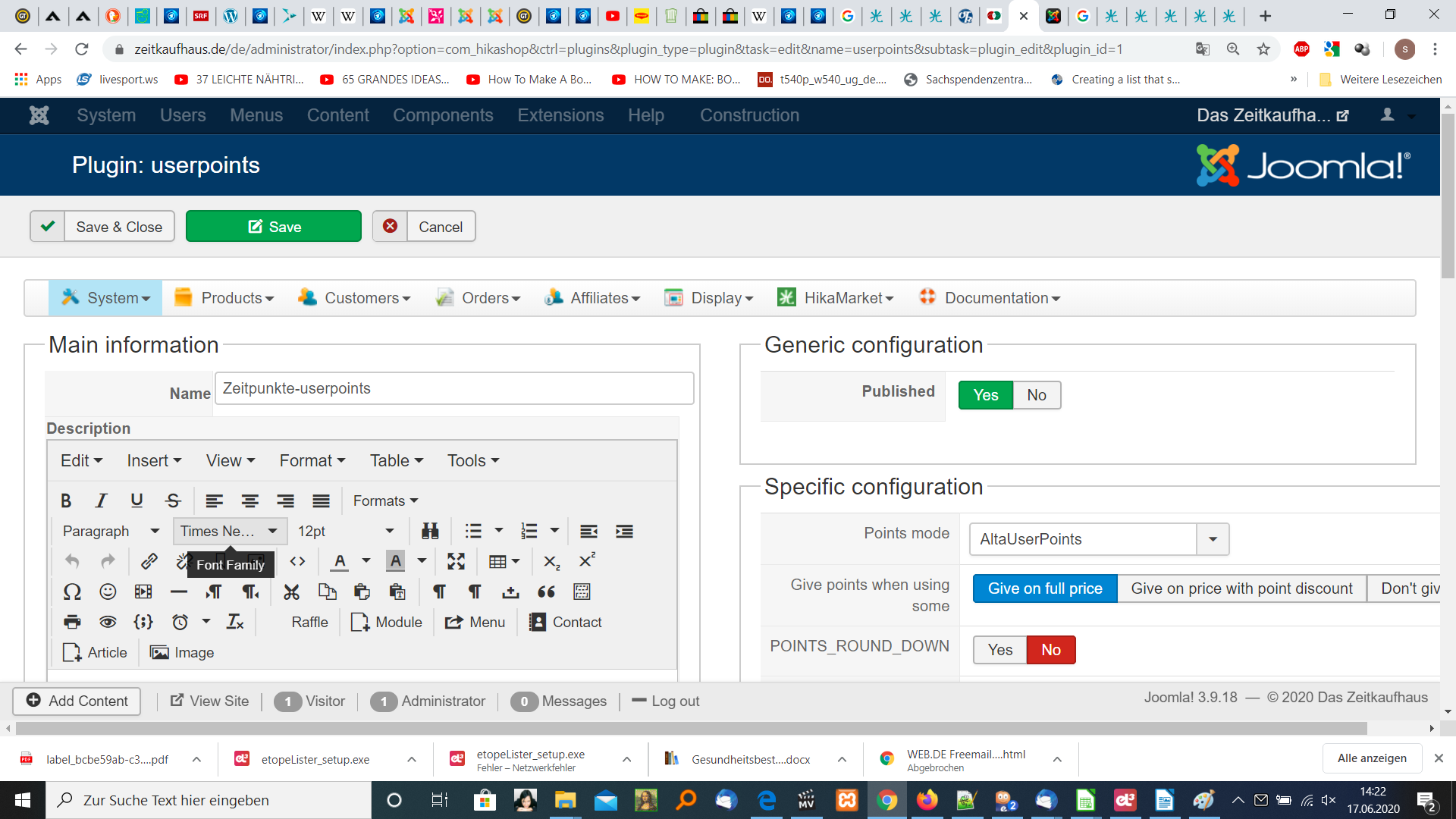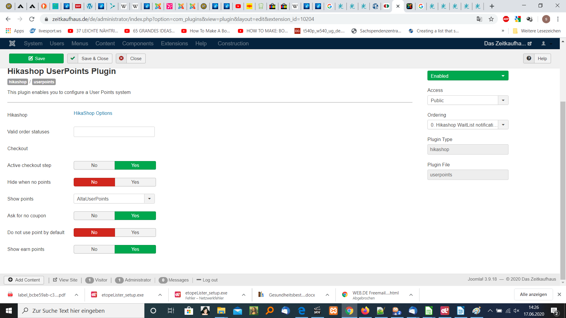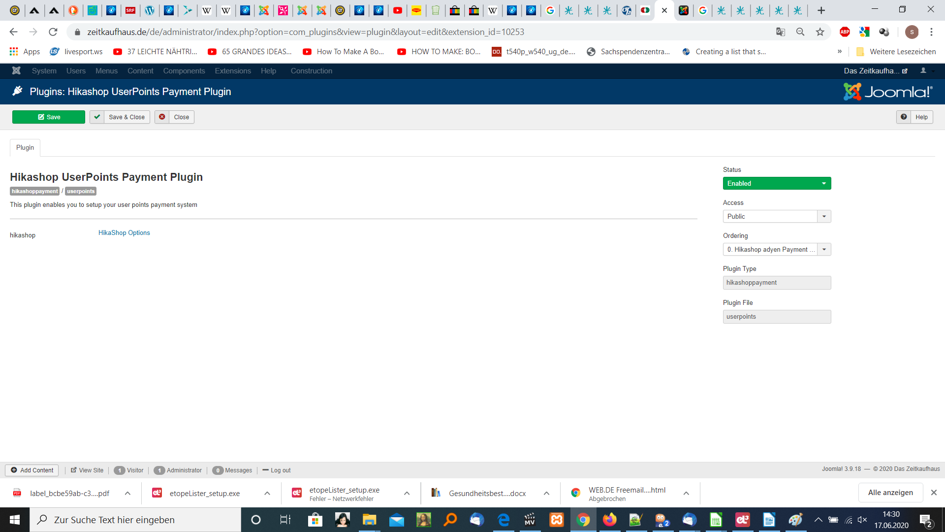I got no success with hikashop, so I use now altauserpoints (1.1.14). I gave myself 51000 points to test buying in my shop. There is shown "You have 51000 points", but I can´t choose a payment methode. I attached some screenshots, maybe somebody fin something out....