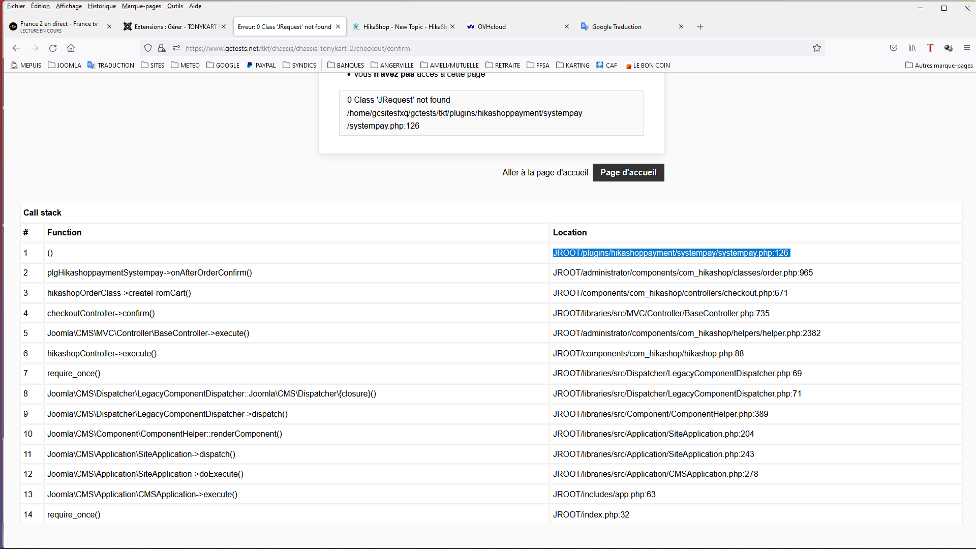 Je teste le passage en J4 et j'ai l'erreur suivante lors de la validation de la commande.