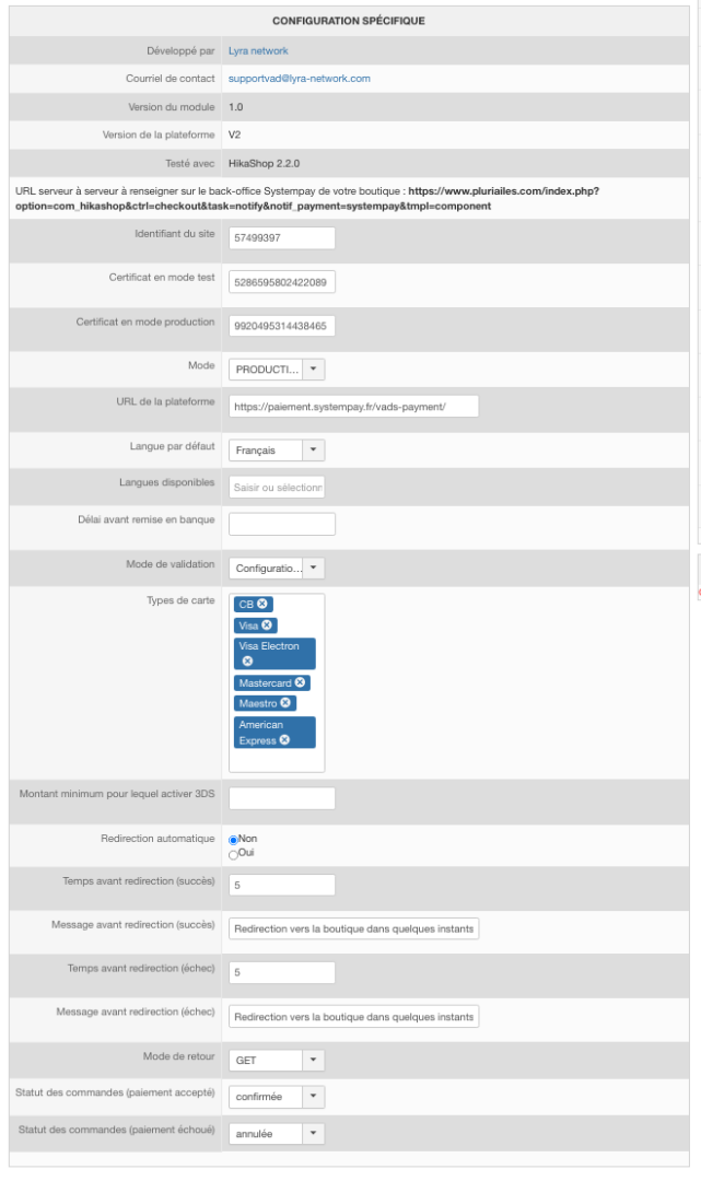 Et si vous avez toujours le souci ensuite, alors il faudra contacter le support de Systempay pour qu'ils regardent plus en détail à l'interieur du plugin.