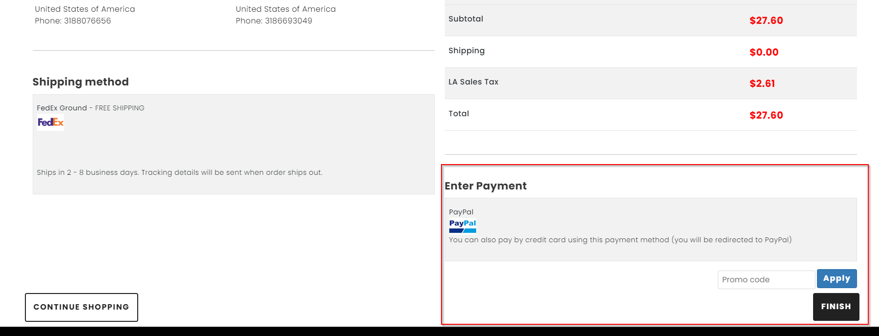 Clicking "finish" takes me to a new page with the paypal payment method selection: