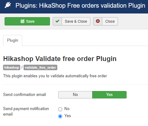 Hi. We have done publish the "Hikashop Validate free order Plugin" but still not receive the email.
