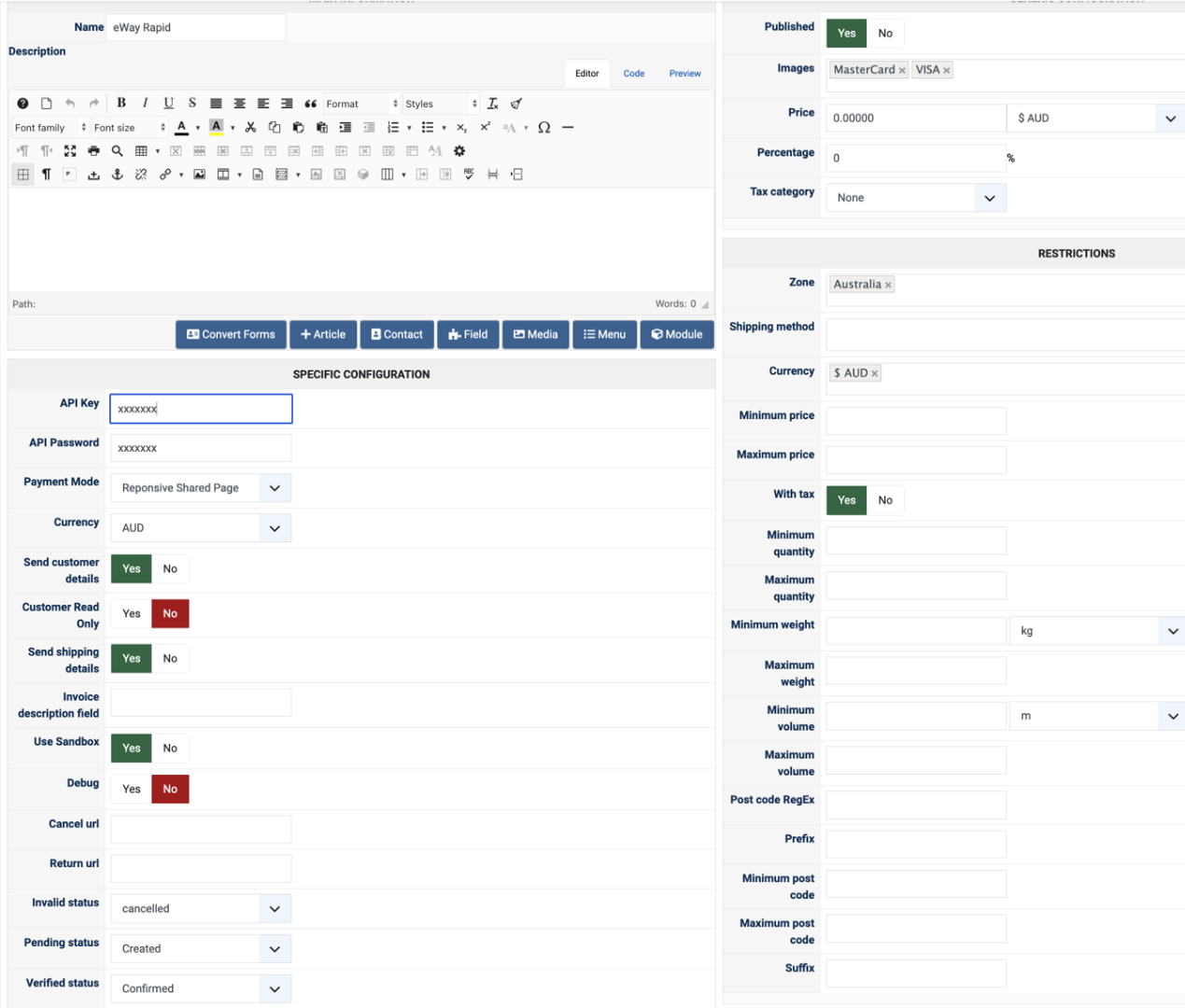 <description>This plugin enables you to setup your eWAY payment system</description>