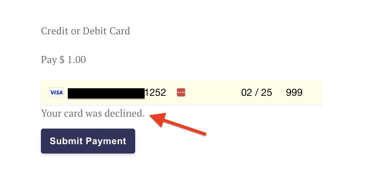 Payment attempt with Visa •••• 1252 was declined