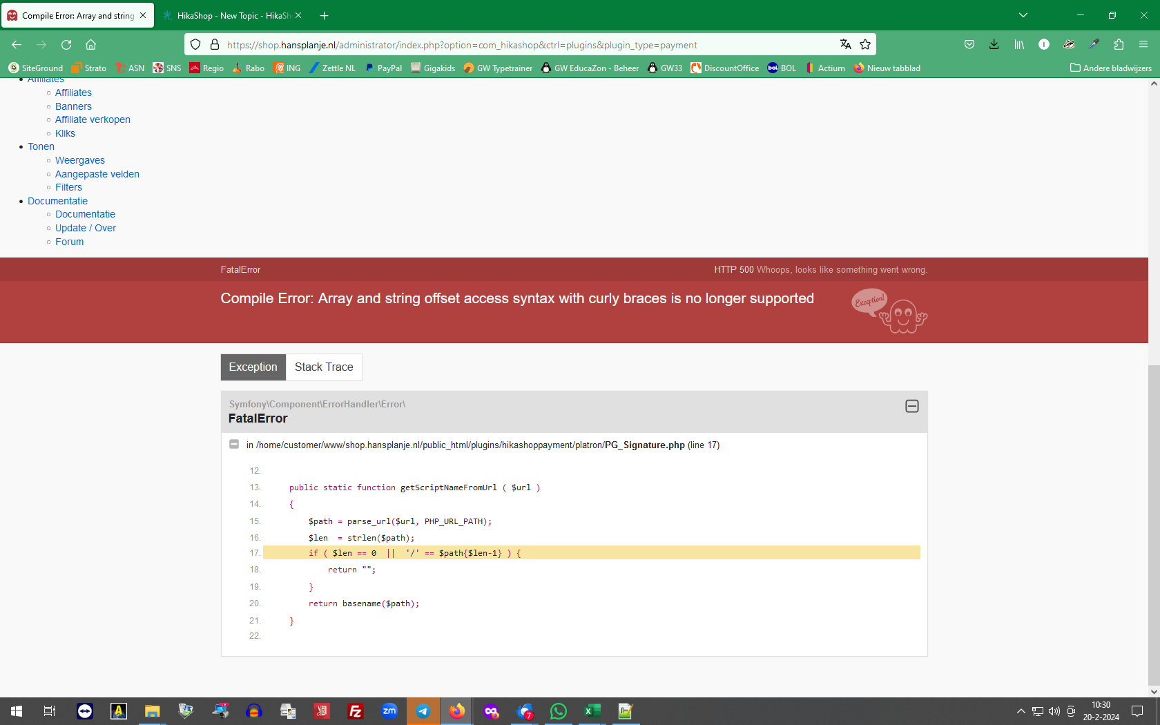-- Error-message(debug-mod must be tuned on) -- : Hi, I found an compile error in HikaShop when creating a new payment method.