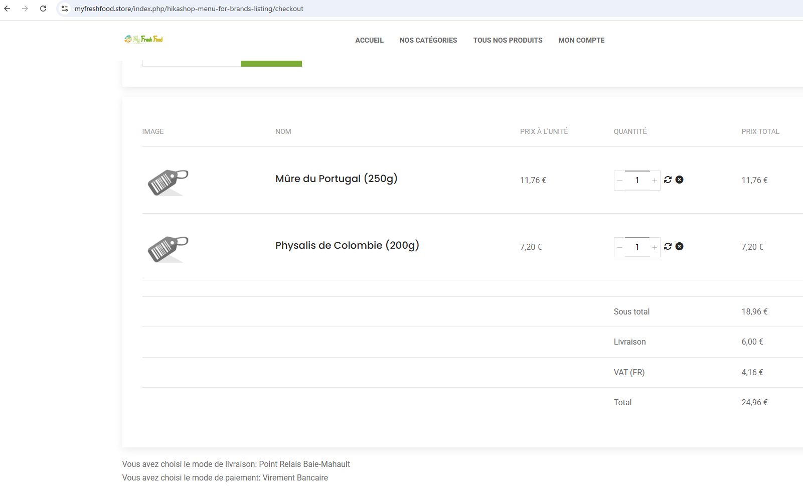 Au final, le montant du panier est correcte