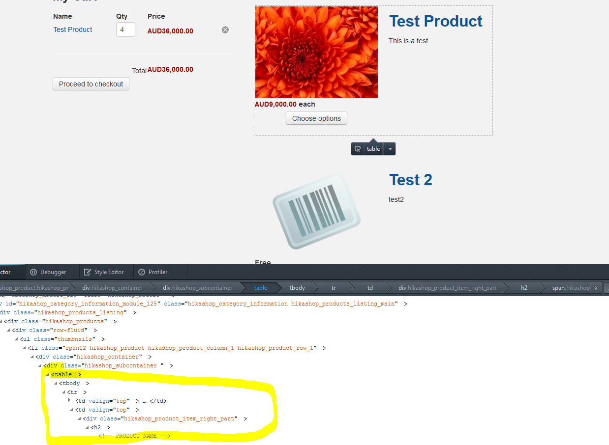 Remove table in div layout of product listings pag