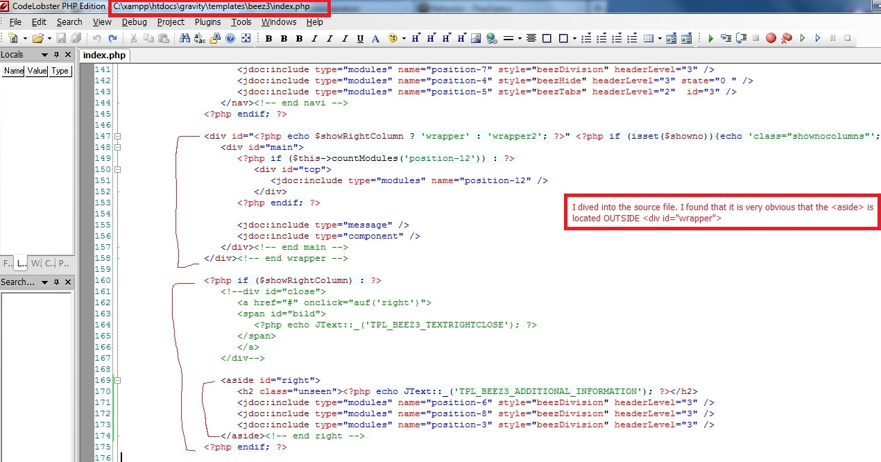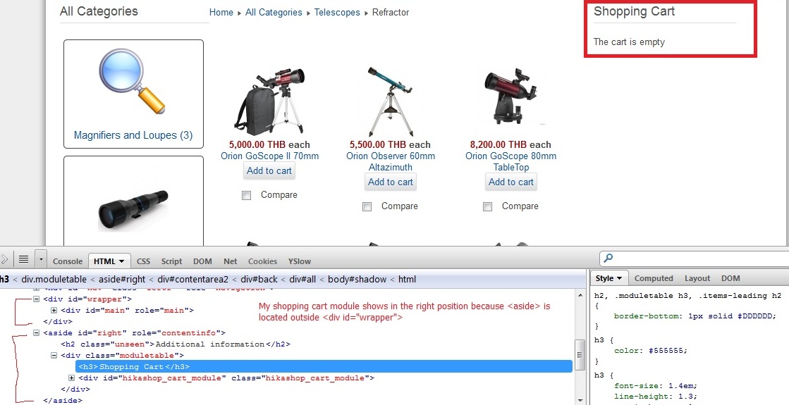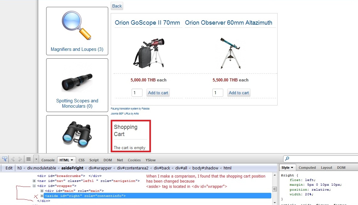 The DOM inspector is not the source code because it will hide you some errors and try to fix the DOM like it could. And as you see, it do it wrong because the design of your page is broken.