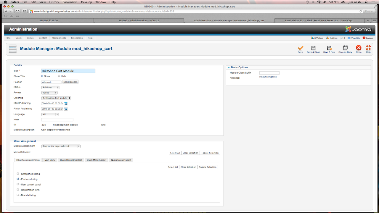 Under the Hika default menus.. Should it be pointing to Products listing??? I have opened Hikashop cart module and assigned it only to pages selected and have only ticked Products listing. Is this correct??