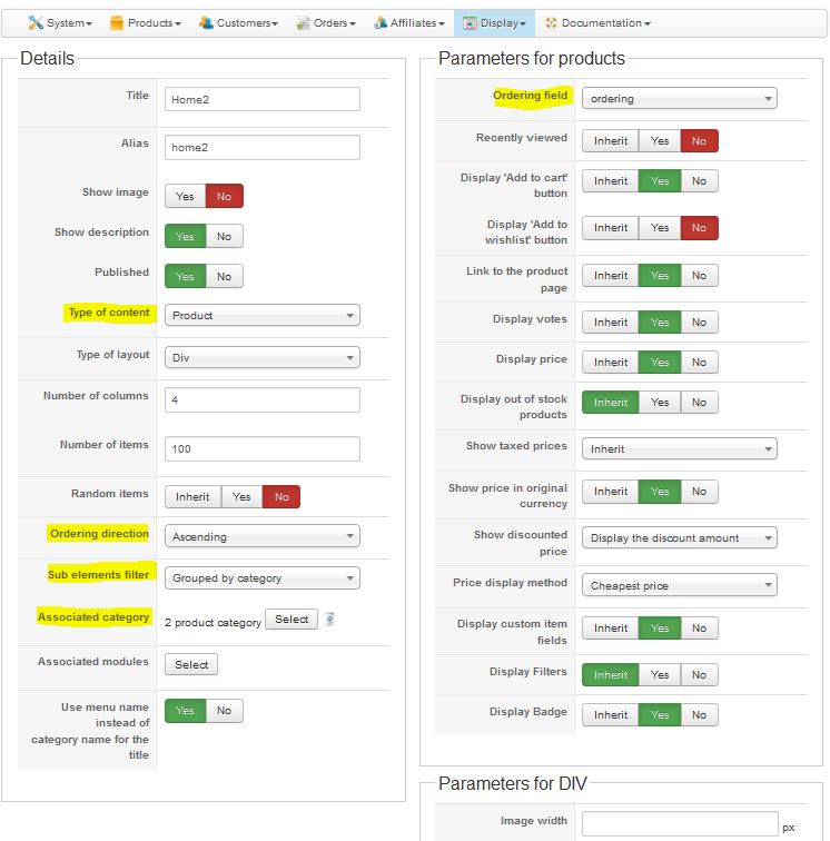 But it uses the category id and not some kind of ordering between the categories. If you want something more complex, you will have to improve the algorithm and add more values in the SQL query made by HikaShop in order to get the product listing.