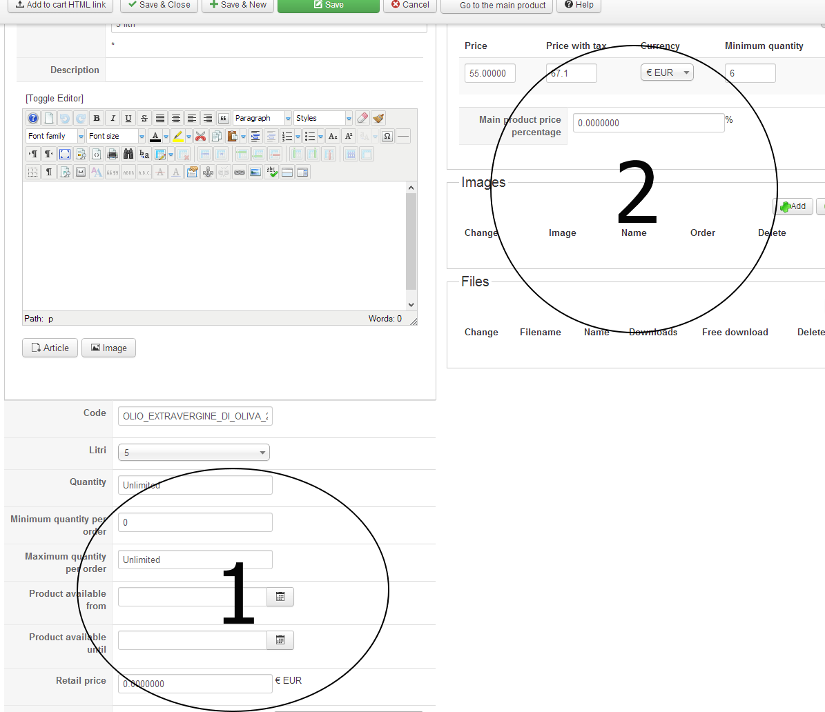 why hikashop has two places to set prices & minimum quantity (1 & 2 on my pic)