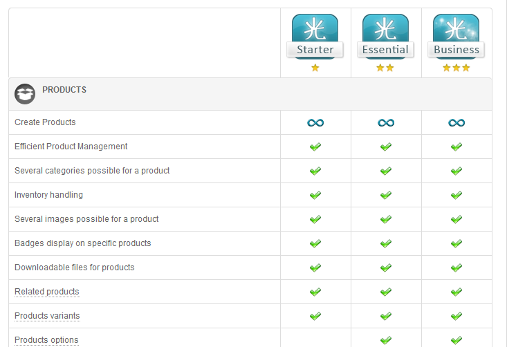 I have one another question in regards to this topic. I like how you have divided your features into categories products, prices, sales and so on... on your comparison page. I have been trying to do the same on our comparison page with no success. Would you be able to lead me in the right direction?