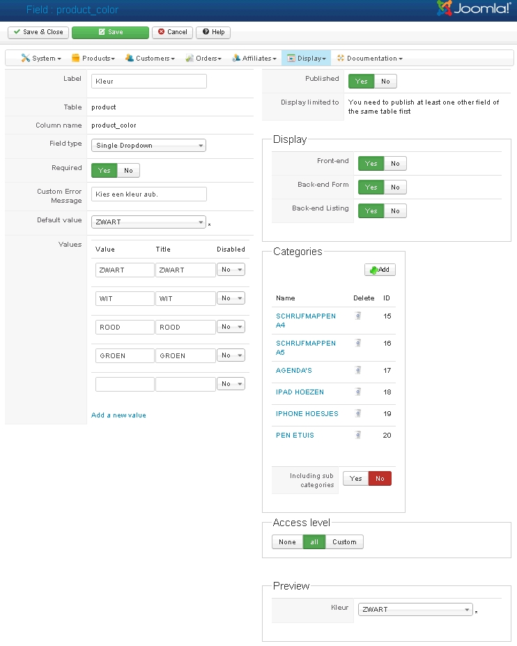 Hi I've upgraded to hika-business edition because I'd like to show a color-selectbox in the productlisting.