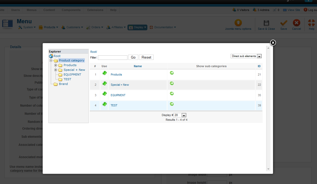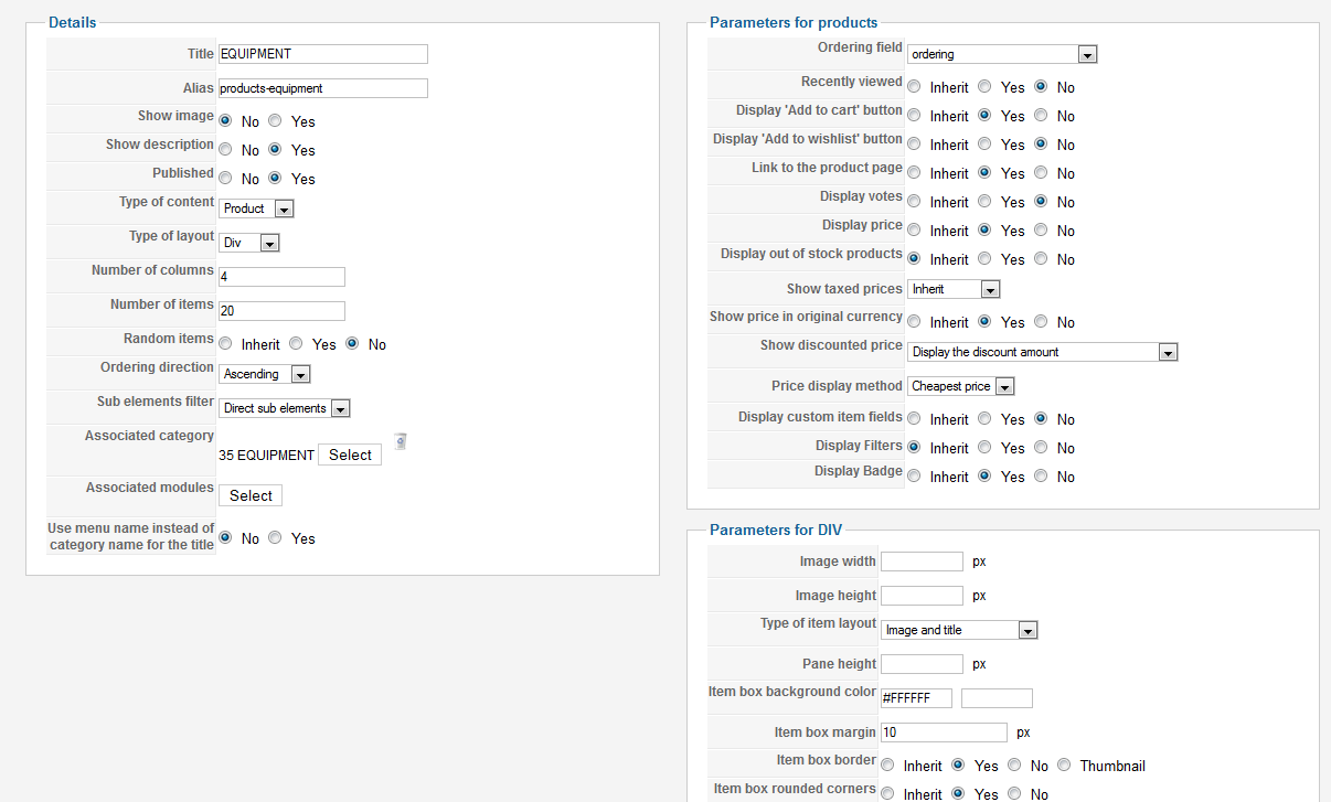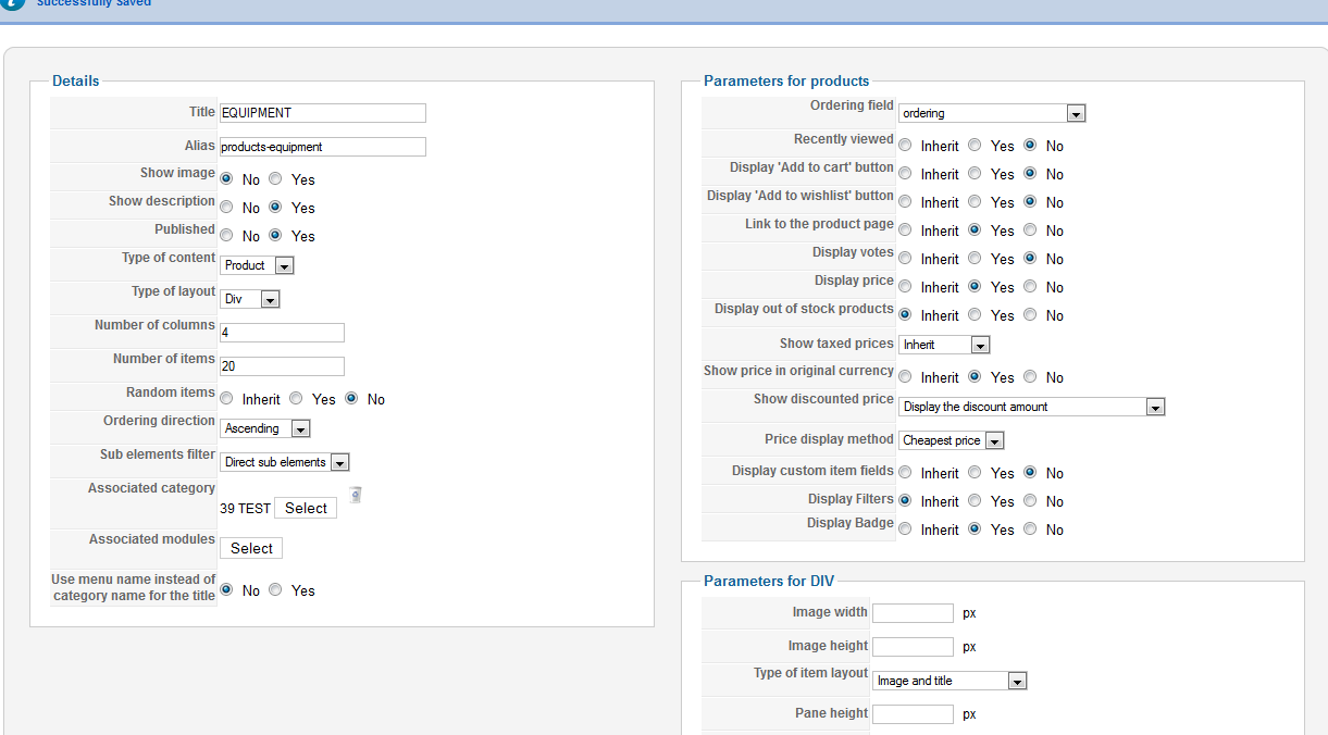 You'll see in my first screen shot, I associate the Equipment link which is a products listing menu item with the category created for equipment, it displays as it should, then for testing purposes I've created another category and you'll see in the screen shot all I've done is associate this new category with the equipment menu link and then it all breaks, the display squashes the products next to each other as you'll see in the 4th screenshot.