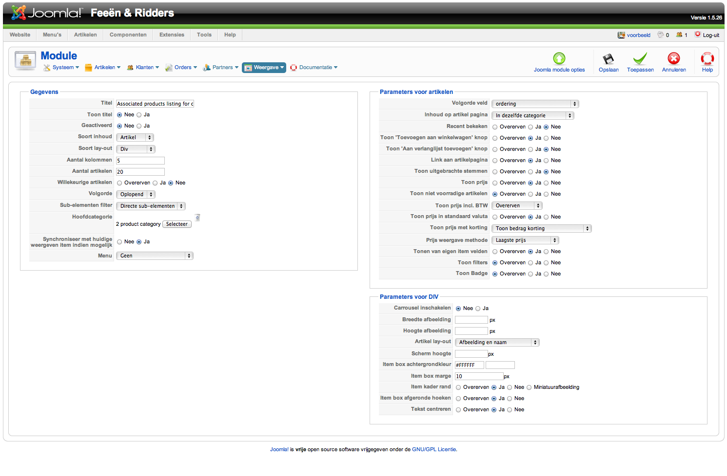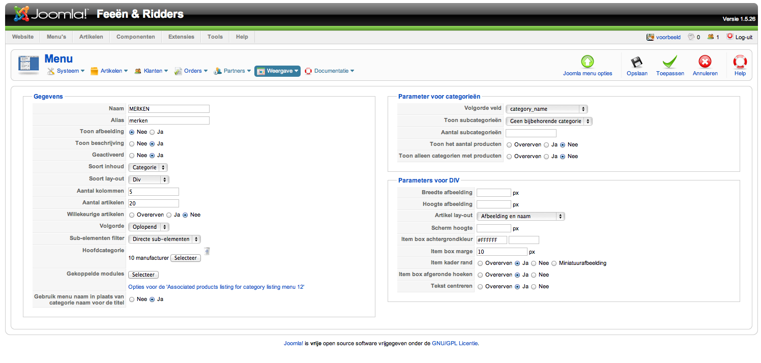 -- Joomla version -- : 1.5