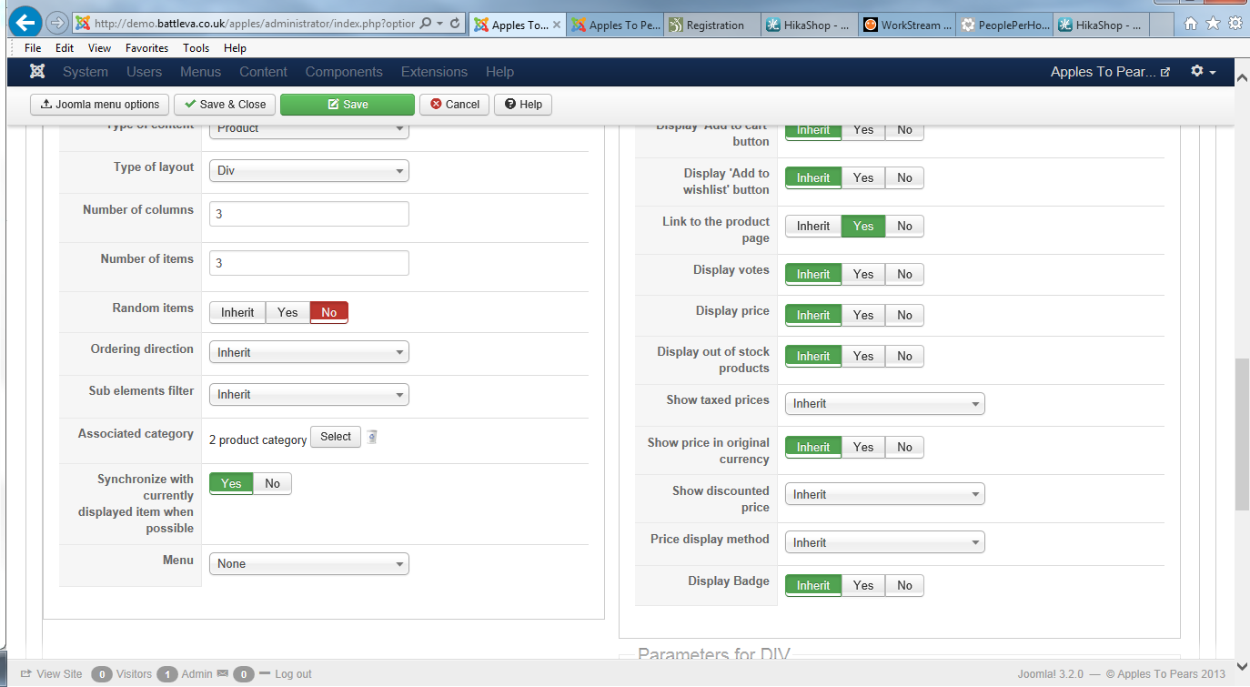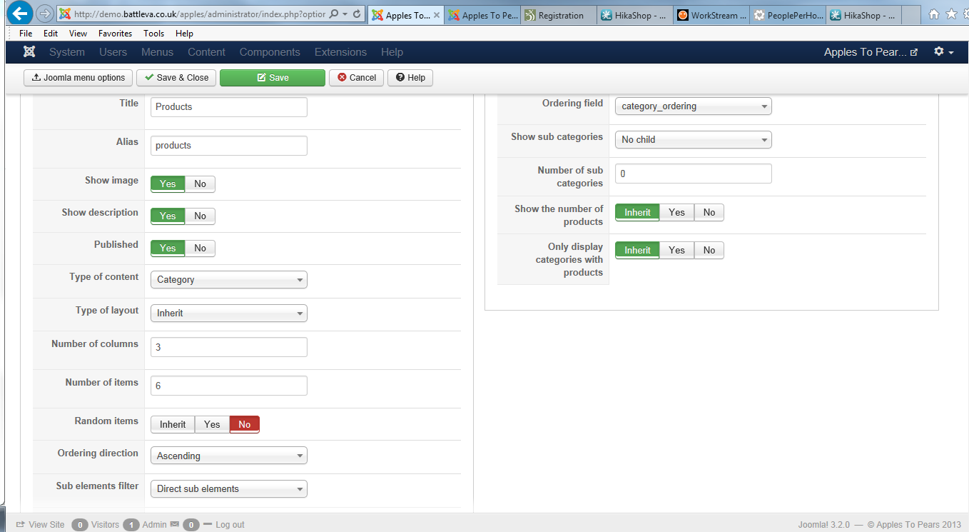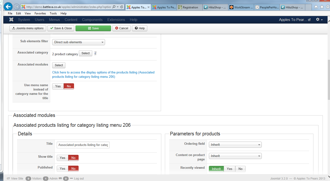 1. Can you show me through some screenshots how did you configured your content menu which have the ID number 206 through "Hikashop->Display->Content menus" ?