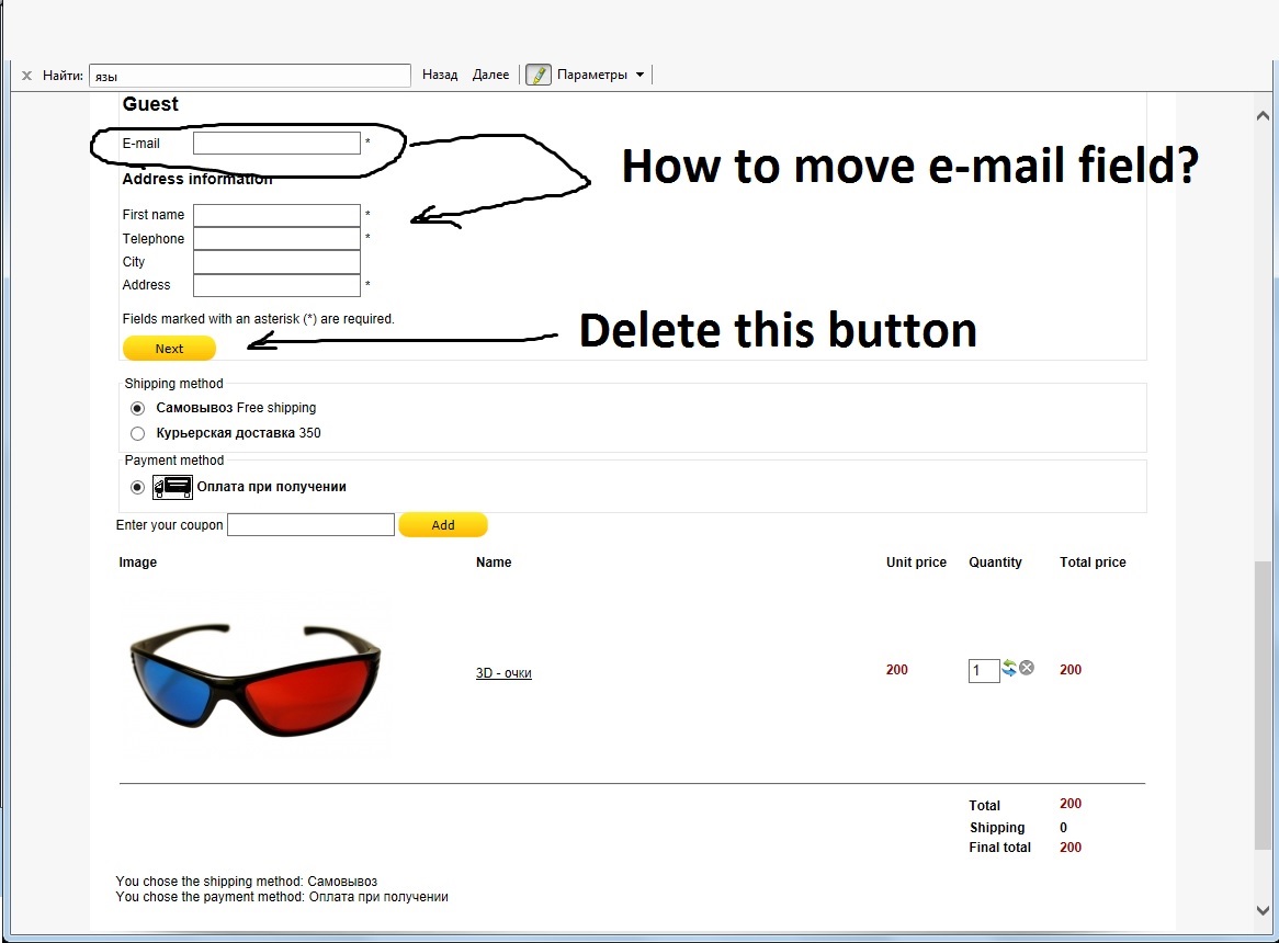 1. I mean move the e-mail field.