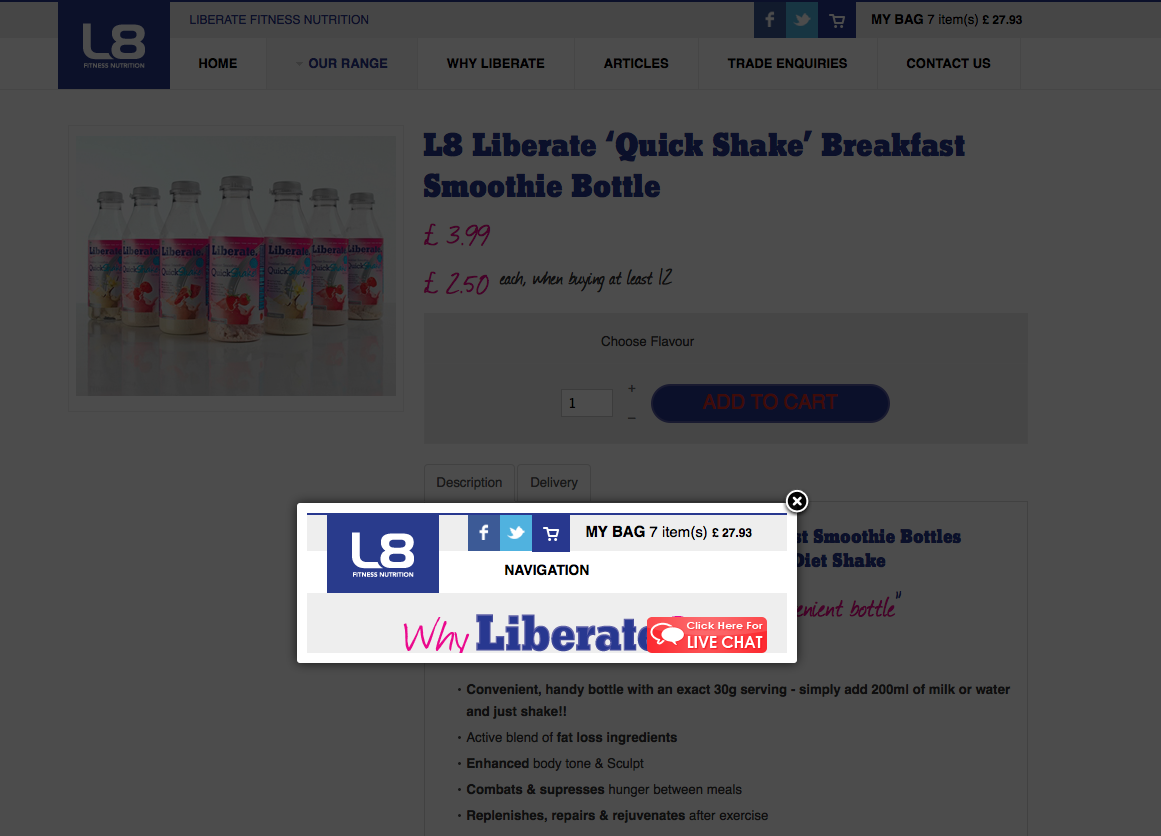 If I navigate to a product from the module on the home page, the popup works correctly (example url: www.liberatenutrition.com/OUR-RANGE/prod...smoothie-bottle.html )