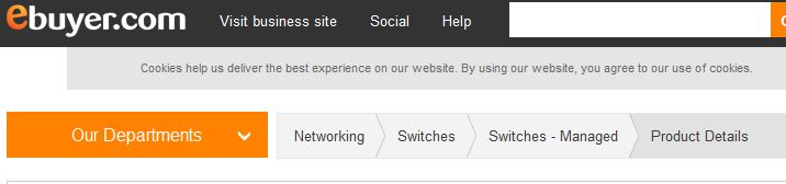 Here is an example from ebuyer where I've clicked on a product featured on the home page ...