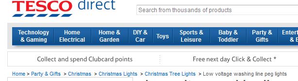 and another from tesco, the route to the product was via their special offers page but when I clicked on the product itself the breadcrumbs changes to show the category heirachy