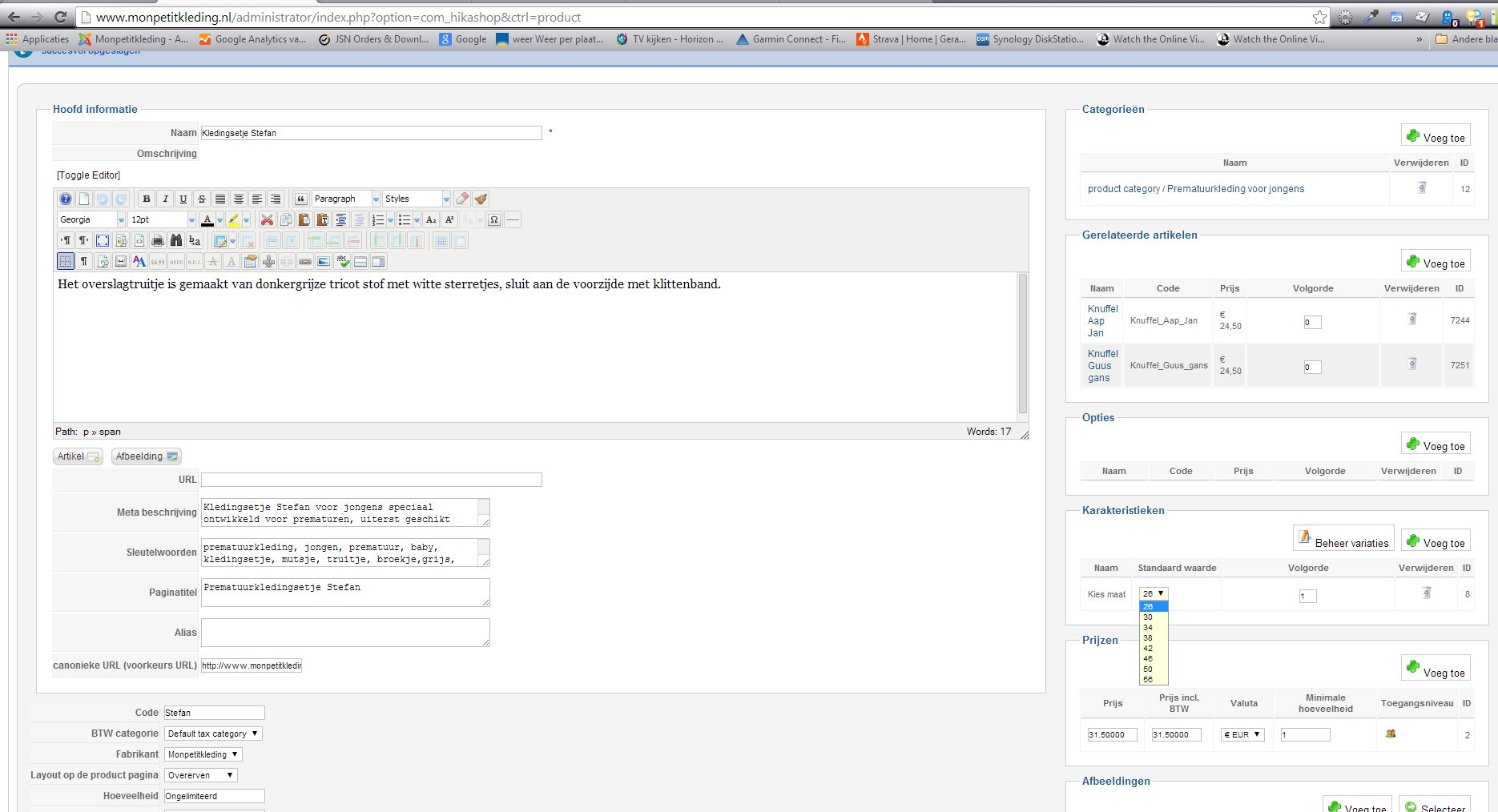 Than I delete in the artikel the old "kies maat" for the new one.