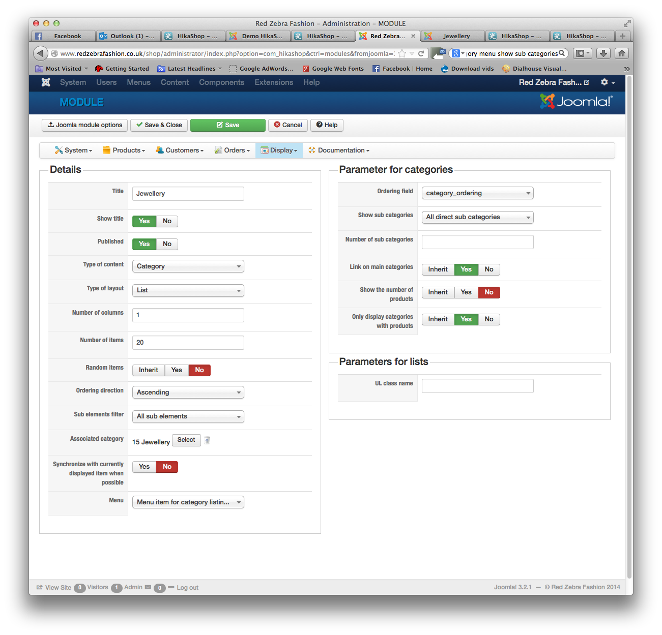 I have managed to create a module displaying the jewellery submenus, but the links dont work.