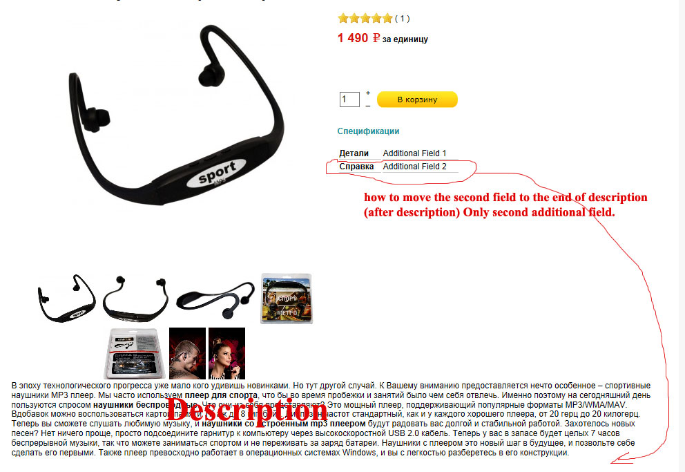 1. I add 2 additional fields in product page. I want to move second field after description position. It is possible.